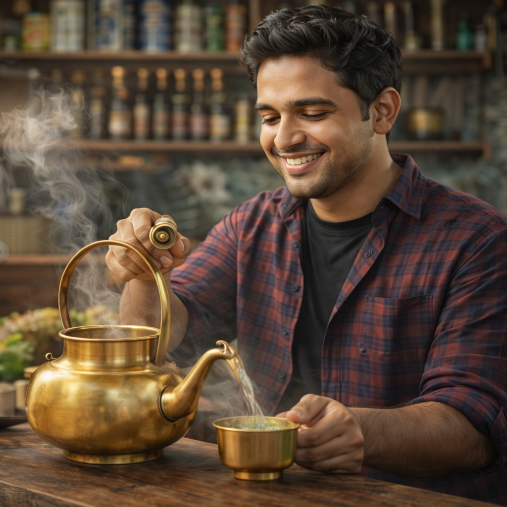 Unlike modern steel or aluminum utensils, we brew our tea in traditional brass vessels, just like ancient Ayurveda recommends. This enhances taste, preserves natural antioxidants, and brings out the authentic herbal aroma.